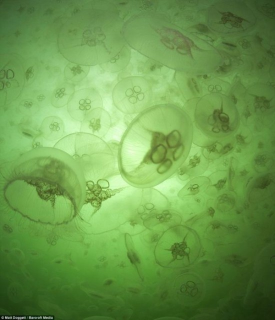 据外媒报道,近日,潜水员Matt Doggett和Richard Shucksmith在Orkney Islands潜水时,拍摄到了隐藏在这片海域海底的惊人惊叹水母图像以及罕见的水母品种,包括紫色水母、月亮水母、远洋水母和狮鬃水母等。