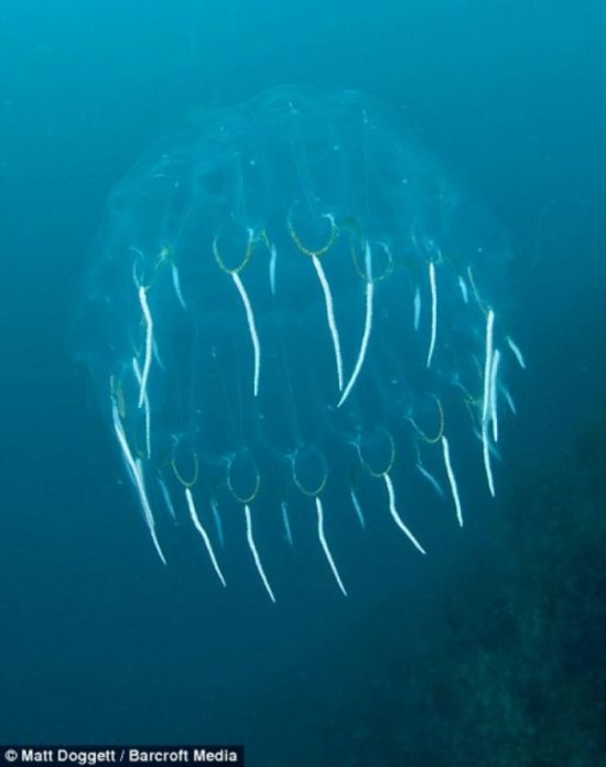 潜水员在Orkney Islands潜水时,拍摄到的体型娇小的栉水母。