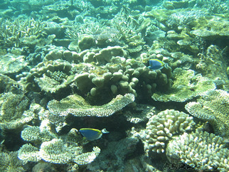 1号区域位于半沙半水407房间正前方10米处,有大片珊瑚群,409房间正对着有一处暗礁,也是不错的选择,该地区适合傍晚和夜间浮潜,会观察到大量的鱼类,你幸运的话还会看见部分大型鱼类。半沙半水整体来说无太好的浮潜点,由于里海沟比较远,地平坦,200米开外的水深不过2.5米。(咱有专业的sunnto的D4i潜水电脑随时可以观察到水温和水深因此数据绝对准确)。因此1号区域应该是不错的近距离浮潜选择。