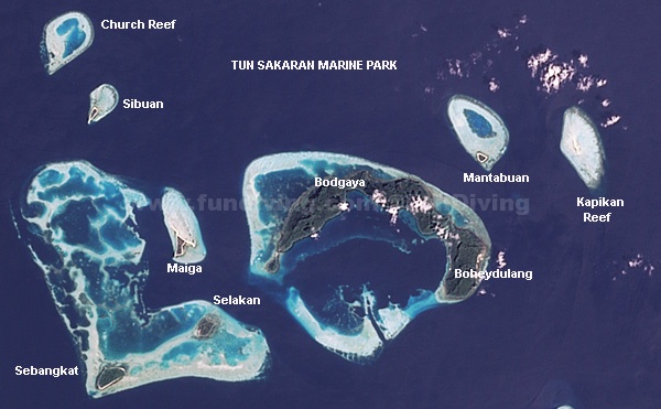 中心岛屿是一座山峰高达海拔450公尺的死火山的一部分,火山口形成一个环礁泻湖,如今已被海水淹没。外侧的低躺岛屿,与美丽的白沙滩和随风摇曳的椰子树,形成强烈对比。公园范围内的八个岛屿皆被岸礁包围,另外也有两个小块礁(圣殿礁 (Church Reef) 和卡匹坎(Kapikan)/(Tabbah Kumai) 踏坝古迈)及一个滩礁(曼达布安 (Mantabuan Bank))。这些礁石是捕捉稀有生物踪影的绝佳地点。