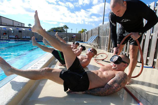 美国海豹突击队的训练可不是每天游泳就好了,他们还必须「捆绑手脚」跳入水底游泳,练习如何不溺毙。