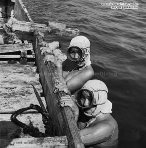 她们只在距岸近的浅海中捕捞。海女们则不得不潜入深海,她们面戴潜水镜、腰系救生绳,潜入较深的海中,用特制的尖刀,撬下海底石头上的珠贝,然后带回海面。
