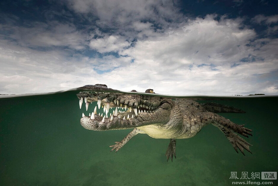 “这张照片,是我在古巴红树林边的咸水中潜水拍摄的。当时我在水下两英尺,靠水下呼吸管呼吸,透过取景器观察、拍摄这只2.5米长的美洲咸水鳄的。”“我在水中尽可能一动不动,全神贯注只为了能拍下它,那是我一生中最兴奋的时刻,在与鳄鱼短暂的‘对峙’后,它转身游走了。”