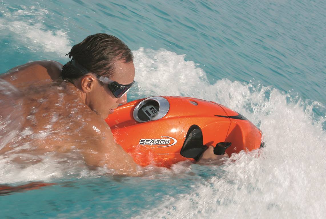 Seabob水中推进器的高性能魅力让您有全方位的享受。其完美流线的造型能在水中产生意想不到的灵活性,让您能够利用简单的身体重心转移进行操控和下潜。