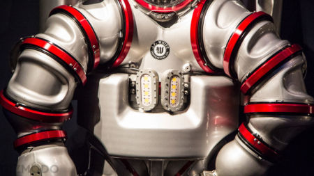 这台可穿戴潜水艇使得潜水员看上去就像是水下的钢铁侠。更重要的是,它内部的压力能够保持和水面上一样,从而保护潜水员在几百米的深度工作数个小时而不必担心减压病。