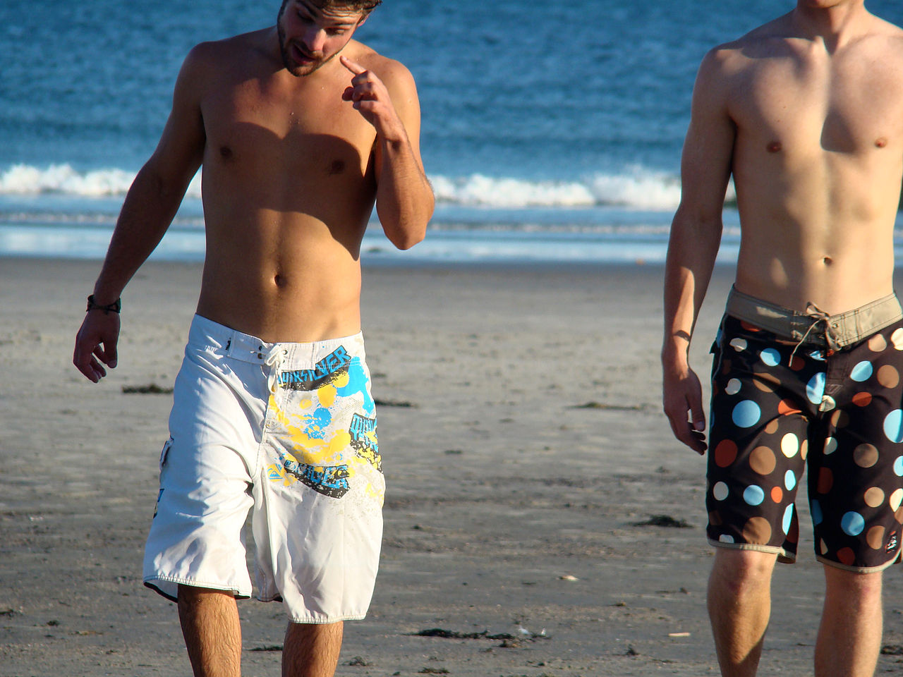 沙滩裤是最常见的一种男性泳装(至少在北美地区如此),大多数出现在OW课程上的男性都会穿着这类宽松的快干短裤。沙滩裤的缺点是很容易起皱和拧在一起,所以潜水员穿上湿衣后就要把短裤弄平才舒服。沙滩裤穿在紧身湿衣下想要平整是很困难的事,专业潜水员一天要穿脱好多次湿衣,也许很快会找到其他替代物。