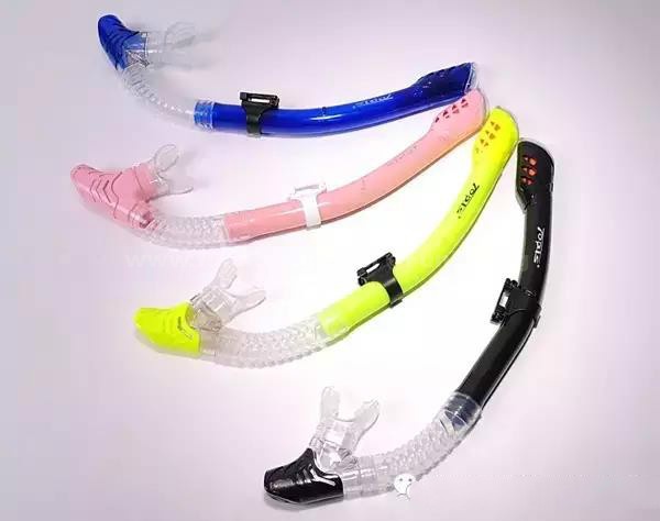 2、干式管和湿式管(包含半干式管):干式管可确保下潜时不会有水灌进管中,而湿式管则保证不了。闭气下潜后上浮到水面时,湿式管需要鼓足气一下将灌满管中的水从进气管头和排水阀处吹走,然后才吸气呼吸。