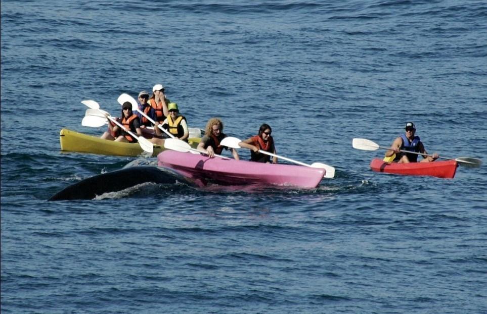 据《每日邮报》报道,两名游客在南非开普敦的海上划皮艇时,被一头50吨的南方露脊鲸从海面上托起。鲸鱼爱好者摄影师戴夫·德贝尔(Dave de Beer)用照片记录下了这惊险的一幕。当时,开普敦西南海岸线附近有一头南方露脊鲸正在他们皮艇下方游动。过了一会儿,这头鲸鱼突然露出水面,用背部把这条皮艇托举了起来。皮艇上的两名游客惊慌失措。