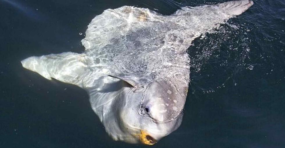 据《每日邮报》报道,葡萄牙海岸附近发现了高达5米的巨型翻车鱼,潜水员只有它的鱼鳍那么大。