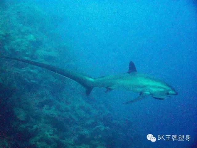 熟悉我的人应该知道我有一条花臂,其中把长尾鲨纹在了上臂,并纹下了我在水下看见长尾鲨的时间/地点。那是在2012年的layanglayang,我经过了一整天的飞行,并且9个小时船程才到达的地方。当我们在水下偶遇长尾鲨的时候,潜导竟然在水下激动的挥舞着双拳,上岸后告诉我们他潜水5000次了,是第一次在水下看见长尾鲨。