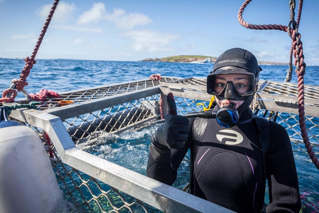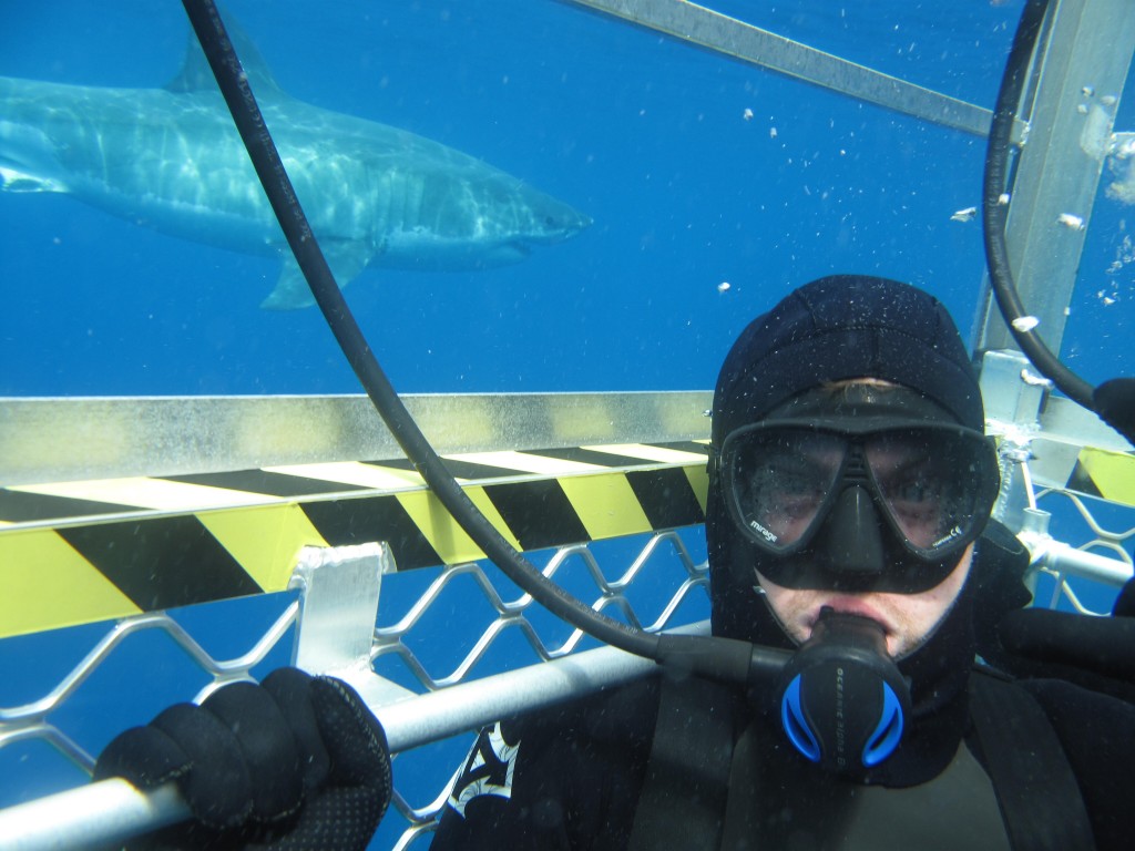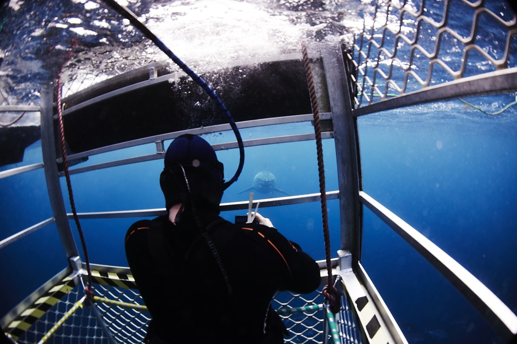澳大利亚 坐潜水箱看大白鲨