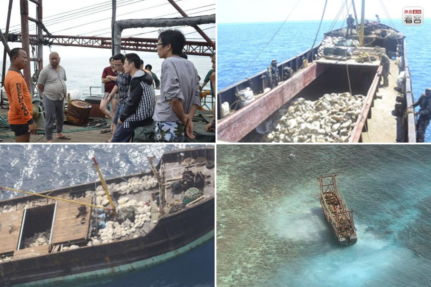 中国和菲律宾在渔民打捞珊瑚一事上经常爆发各种冲突。图为菲律宾截停的一艘采集了大量珊瑚的中国渔船。由于珊瑚虫也附着在珊瑚上,过度打捞的行为往往对生态环境带来严重的破坏。
