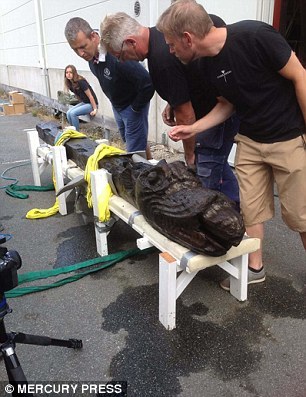 波罗的海现木质”怪物”:来自500年前战舰,据国外媒体报道,潜水员在波罗的海发现了一个沉没海底达500年之久的木质怪物。这个木质物,有狮子一样的耳朵和鳄鱼一样的嘴巴,大约重660磅(300公斤)。它是15世纪丹麦军舰船头上的装饰物。在本周,潜水员小心地将它从沉船“Grb
