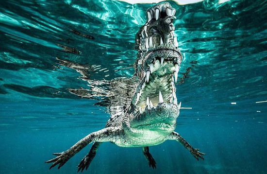 在距离最近的时候,鳄鱼的牙齿甚至碰触到相机的镜头