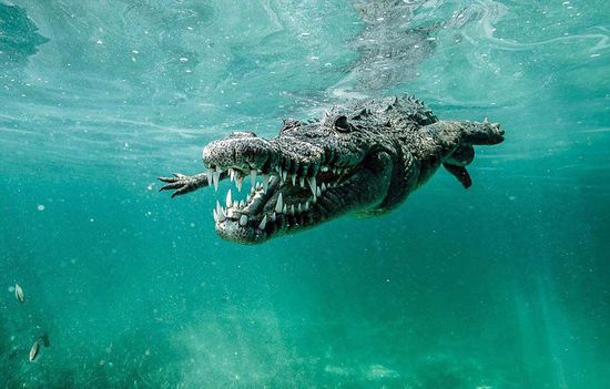 水下摄影师卡斯蒂洛在古巴附近水域抓拍到咸水鳄照片