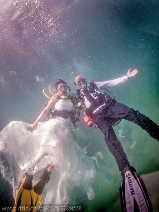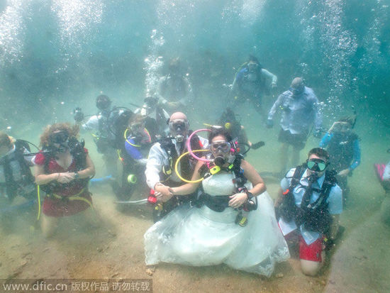 你问我爱你有多深?美国夫妇在三十英尺水下成婚