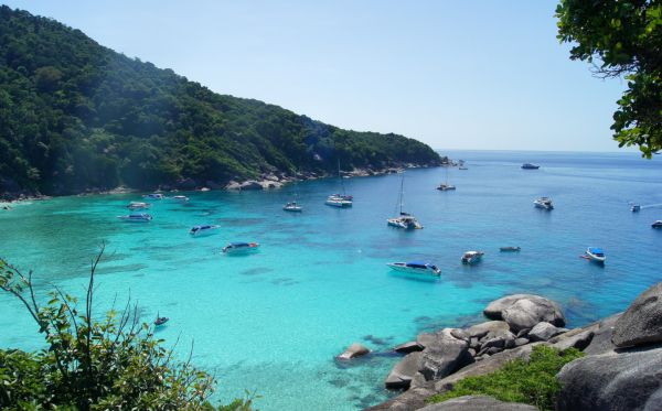 5、斯米兰群岛(Similan Island):斯米兰群岛位于泰国普吉岛西北方约85公里的安达曼海上,大小岛屿一共九个;每三个一组,分成三组排列。这一带水域的群岛早已被泰国政府列为国家海洋保护公园,不准任意下锚,以免伤害珊瑚等生物,如此用心保护可见一般。斯米兰海底景观是以巨大的花岗岩与丰富的各色各样珊瑚组成,有海底山丘连绵,还是世界上观看鲸鲨最佳地点,从十月到五月几乎都可以看到鲸鲨出没。还有着名的豹纹鲨 Leopard Shark,似鳐又似鲨的吉他鲨 Guitar Shark等,令人惊喜难忘。