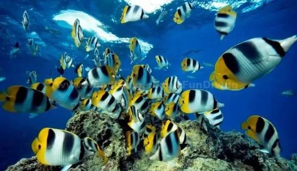 斐济海水清澈透底,海底资源非常丰富,各色珊瑚与种类繁多的热带鱼让人眼花缭乱,是潜水的最佳场所,千万不要错过隐藏在红色、白色、紫色软珊瑚中的海洋生物。这里有终年温暖的海水、随处可见的热带鱼。五彩缤纷的巨大的珊瑚景观早已是世界闻名的潜点。
