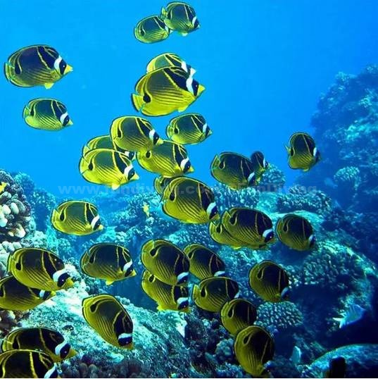 由于有着天然珊瑚礁长堤的护卫,这里浪很小,鱼儿在珊瑚礁中毫无顾忌地生长。带上鱼食,戴好浮潜装备,纵身蓝色怀抱,就有无数的鱼儿围着你打转。海水非常清澈,在水下可以看到射入海底的缕缕阳光,水下的一切都是那么清楚,美丽的珊瑚礁,与人共舞的鱼群,都看得清清楚楚。