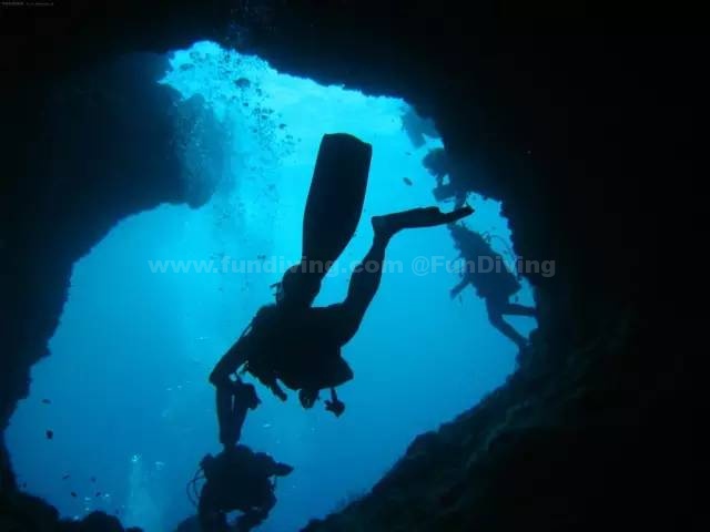 当然,如果你是资深潜水爱好者,也可以在这里寻求更刺激的冒险——深海潜水。到达16米高的天然岩壁裂缝,潜水者可以顺着岩壁爬升。
