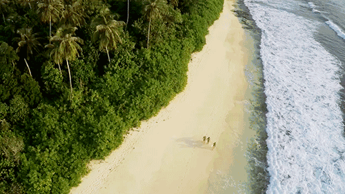 岛上全是细软的白色海沙,混着被吹打碎的红珊瑚粉末,水清沙幼。而这里的海水像钻石一样晶莹透亮,仅凭肉眼便能看到海底的景象。